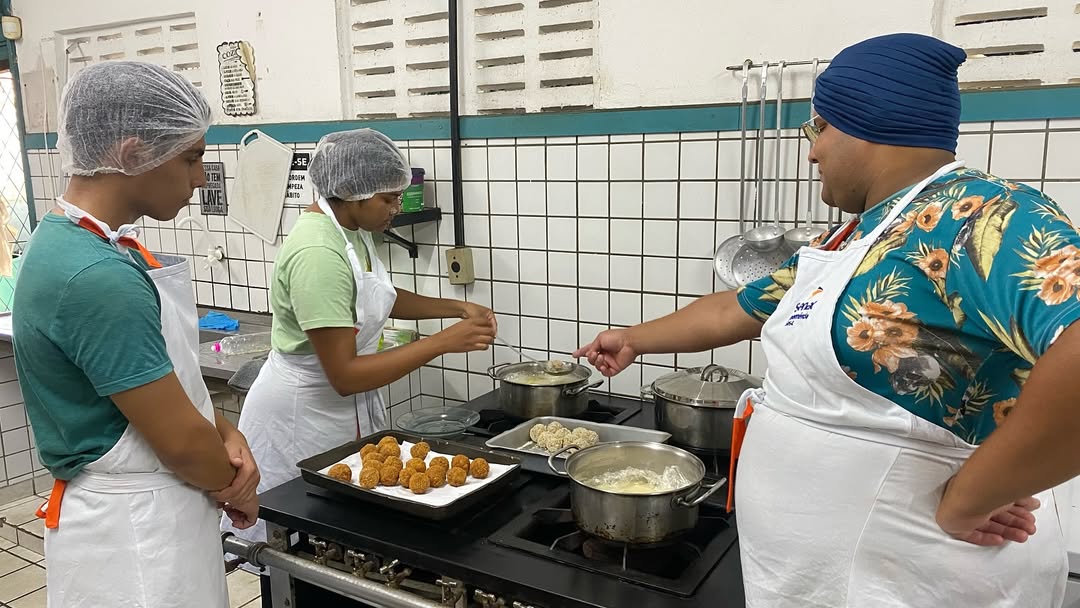 nata e bolinhos de jerimum, além de técnicas de corte, cocção e finalização.